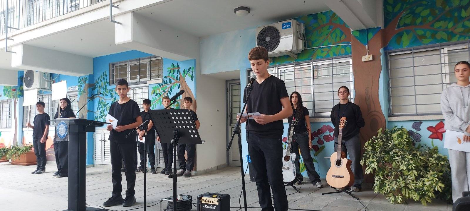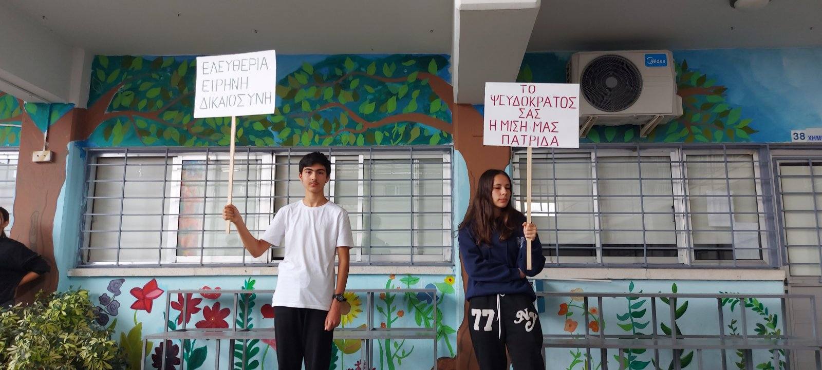 Οι μαθητές του Κεντρικού Μαθητικού Συμβουλίου του Σχολείου μας, διοργάνωσαν εκδήλωση διαμαρτυρίας στην οποία καταδίκασαν το Ψευδοκράτος και διατράνωσαν την επιθυμία τους για αγώνα μέχρι την τελική δικαίωση και επανένωση του νησιού μας. Παράλληλα τίμησαν τη μνήμη των Πεσόντων κατά την Τουρκική Εισβολή 1974. Την εκδήλωση τίμησε με την παρουσία του ο κ. Ανδρέας Σοφόκλης, επιθεωρητής φιλολογικών μαθημάτων, ο οποίος μίλησε στους/στις μαθητές/τριες για τη σημασία της καταδίκης του Ψευδοκράτους και του αγώνα για επανένωση της πατρίδας μας.