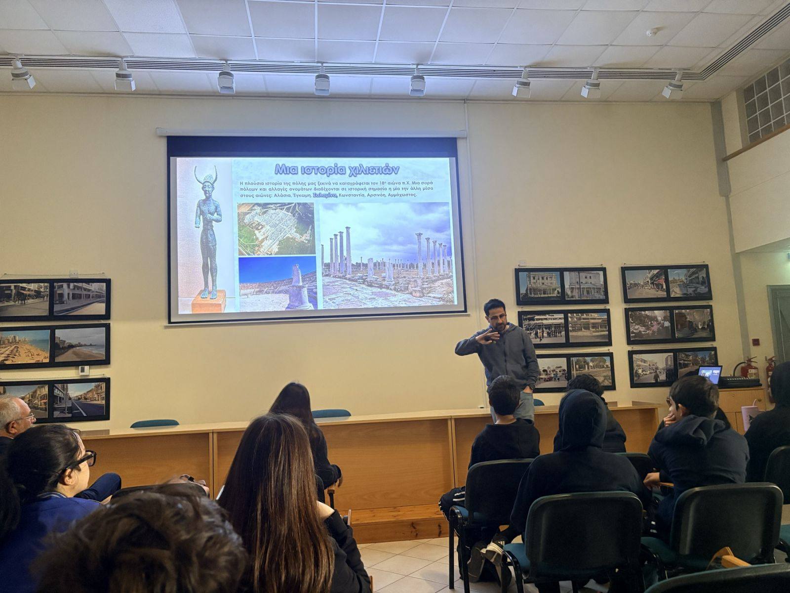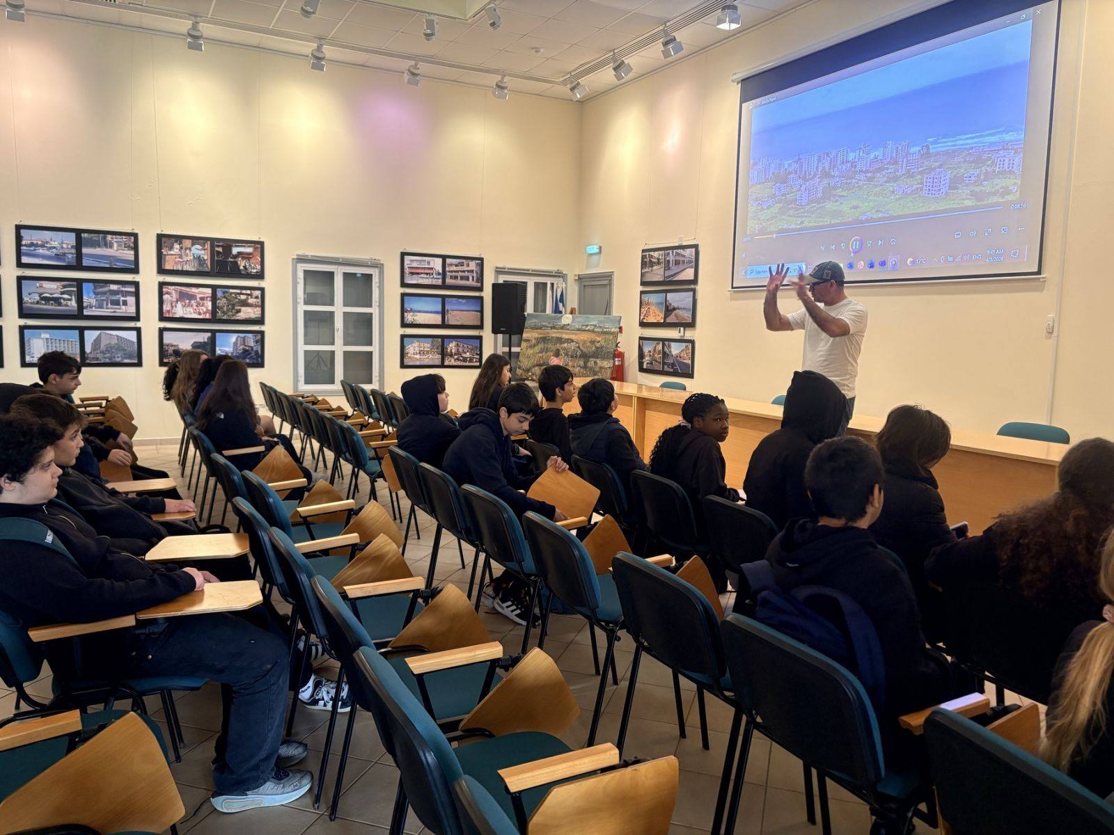Στη συνέχεια, στο Πολιτιστικό Κέντρο Δήμου Αμμοχώστου, παρακολούθησαν ντοκιμαντέρ για την κατεχόμενη Αμμόχωστο και ενημερώθηκαν για την τουρκική εισβολή/κατοχή, την Πράσινη Γραμμή και τη ζωή δίπλα στο συρματόπλεγμα. Η συνάντηση με πρόσφυγες από την Κάτω Δερύνεια αποτέλεσε την πιο συγκινητική στιγμή, φέρνοντας τους συμμετέχοντες σε άμεση επαφή με τον πόνο της προσφυγιάς και τη σημασία της ιστορικής μνήμης.