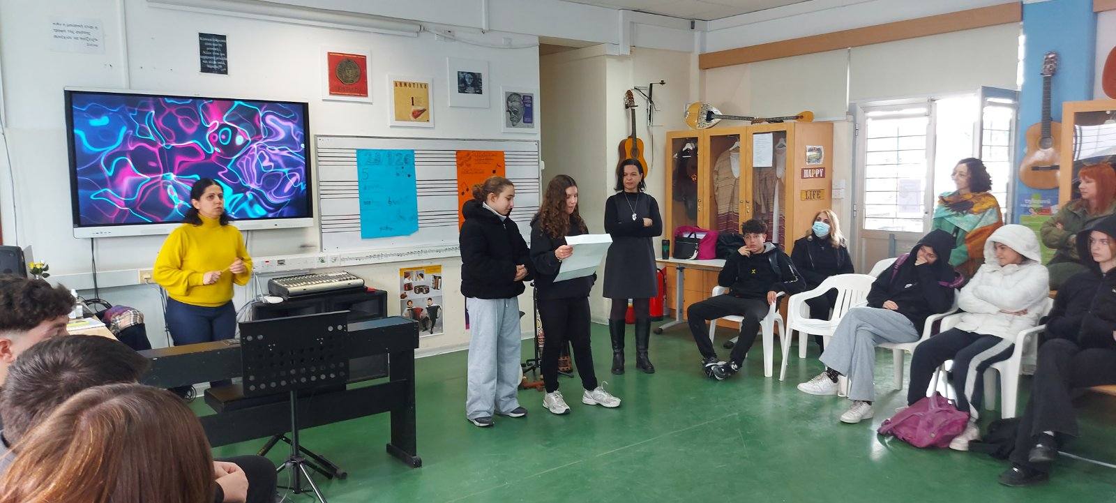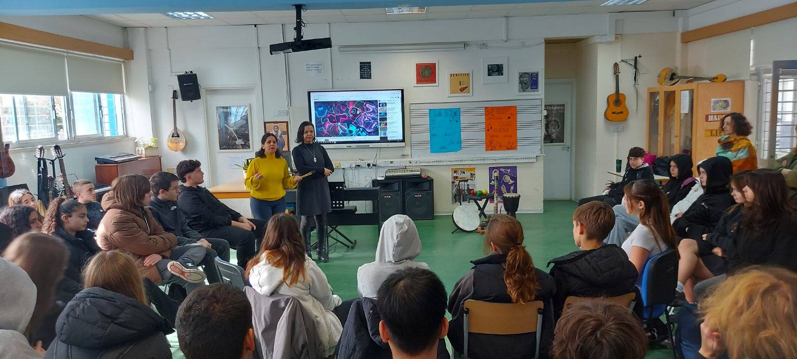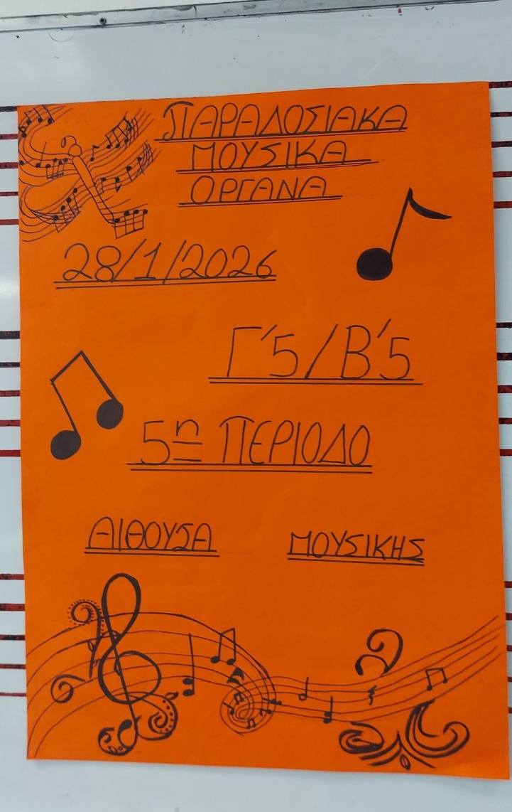 Στο πλαίσιο του Διαπολιτισμικού μήνα πραγματοποιήθηκε η 4η Διαπολιτισμική Δράση μας. Τα τμήματα Γ5 και Β5 (Μεταναστευτική) συνεργάστηκαν αρμονικά και παρουσίασαν διάφορα παραδοσιακά όργανα από την Κύπρο και το εξωτερικό.